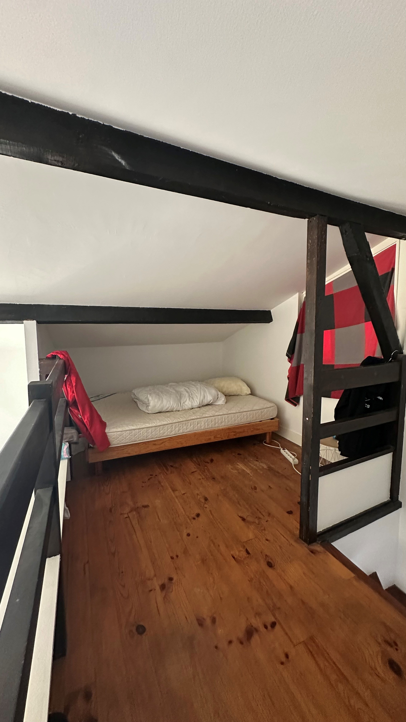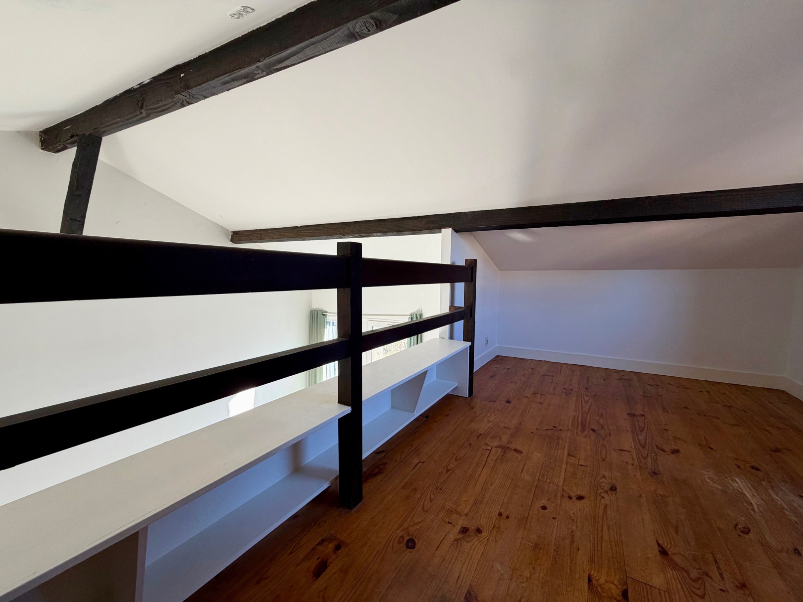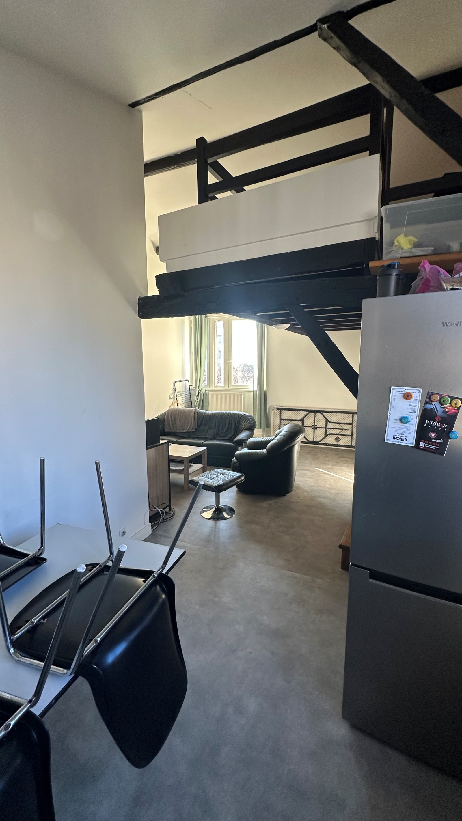 Place de la Barreyrette, charmant duplex à louer offrant entrée, séjour, cuisine, deux chambres, salle de bain, WC, mezzanine.