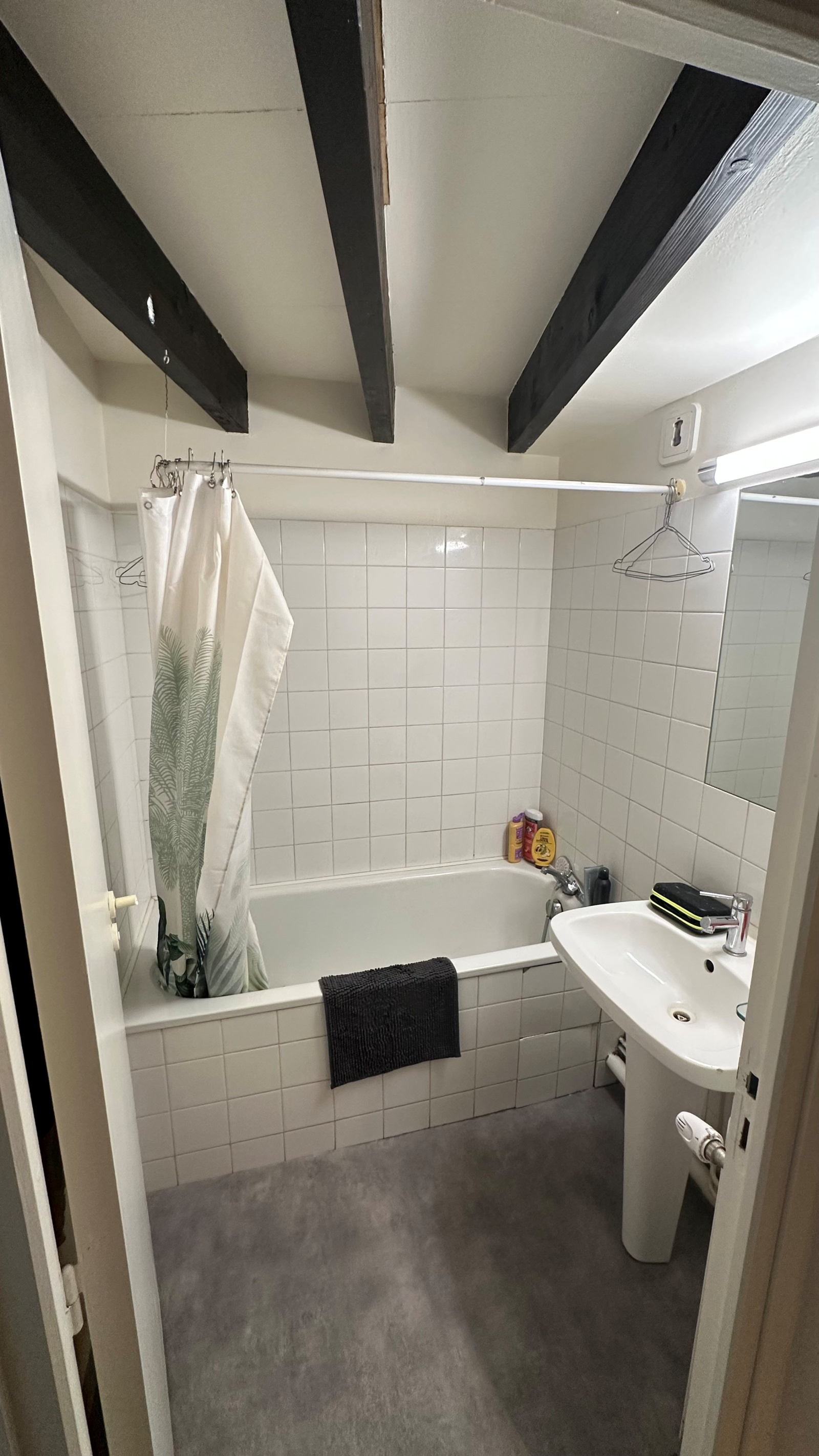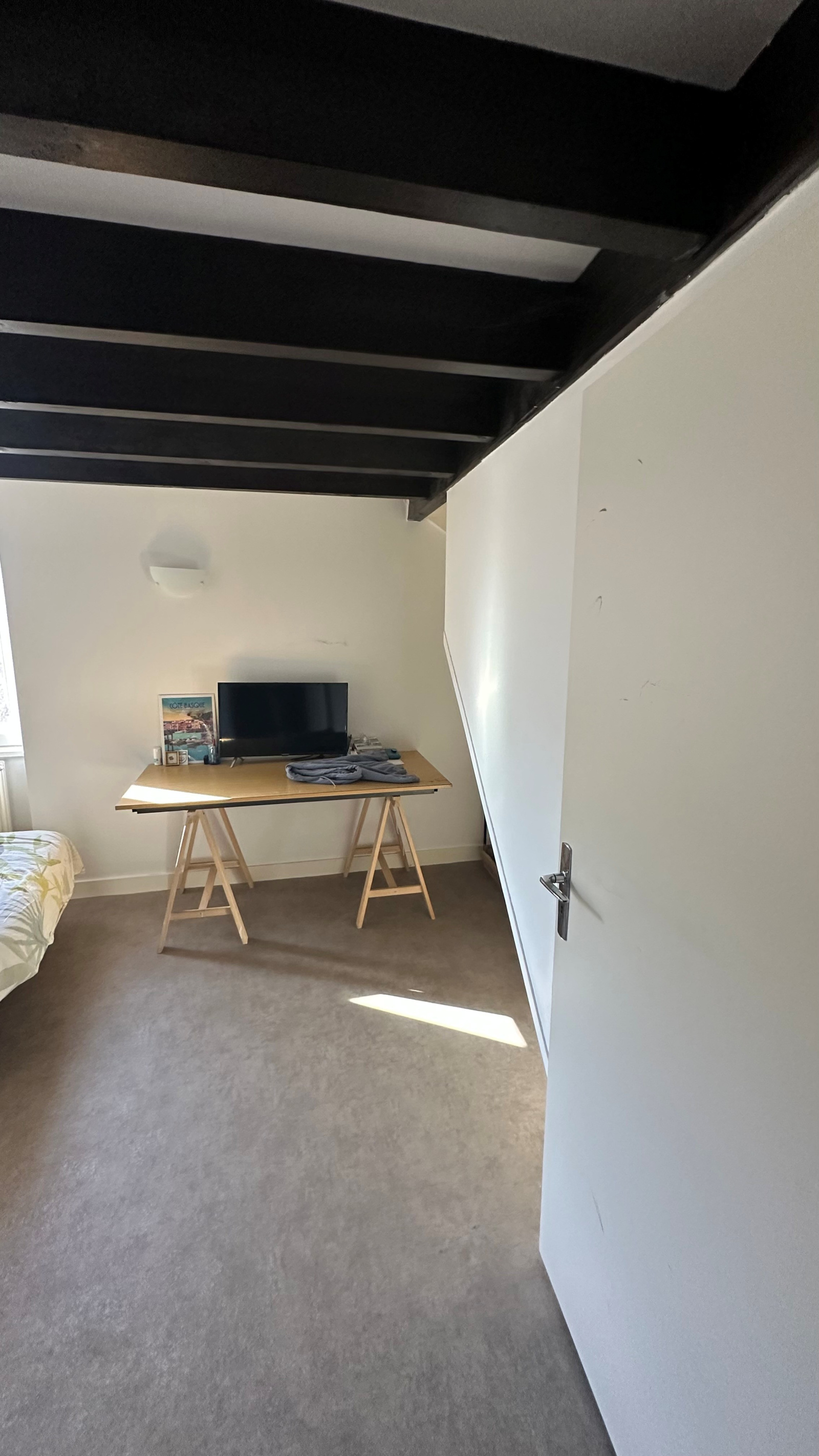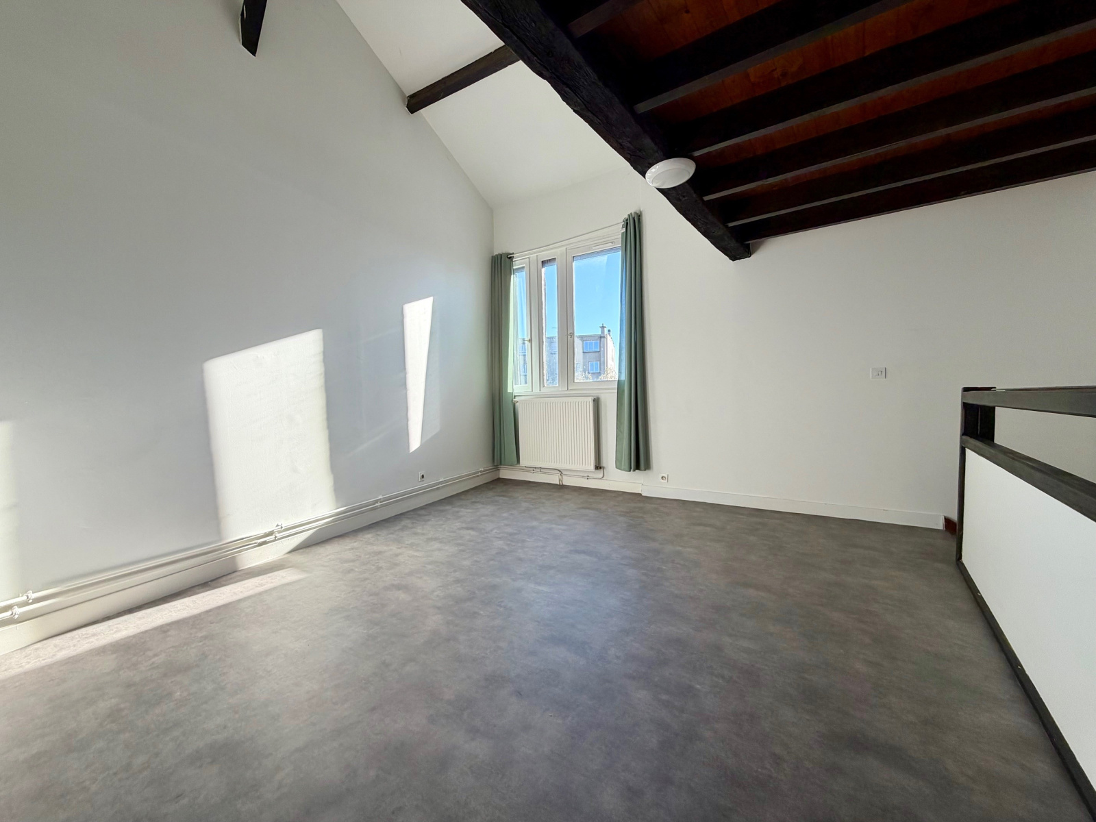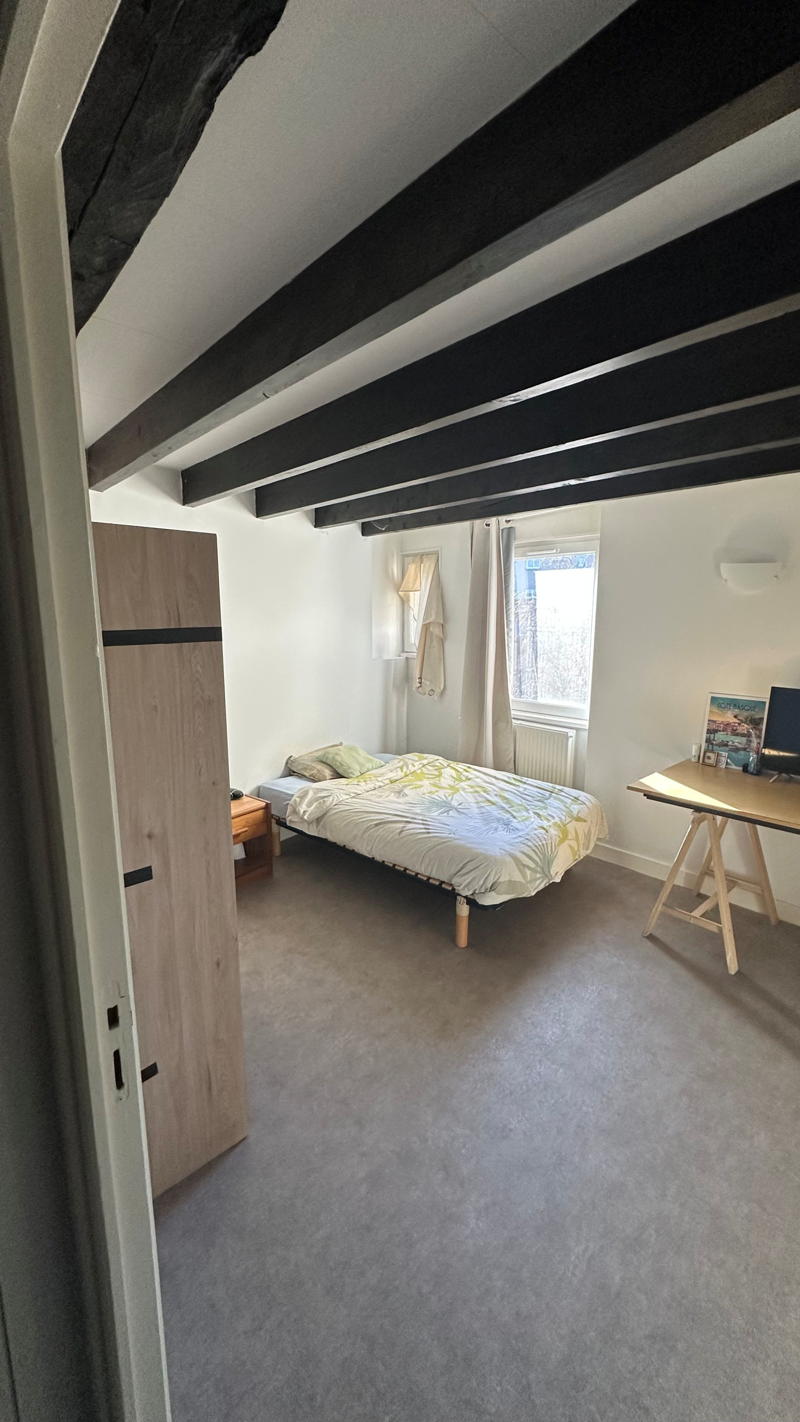 Place de la Barreyrette, charmant duplex à louer offrant entrée, séjour, cuisine, deux chambres, salle de bain, WC, mezzanine.