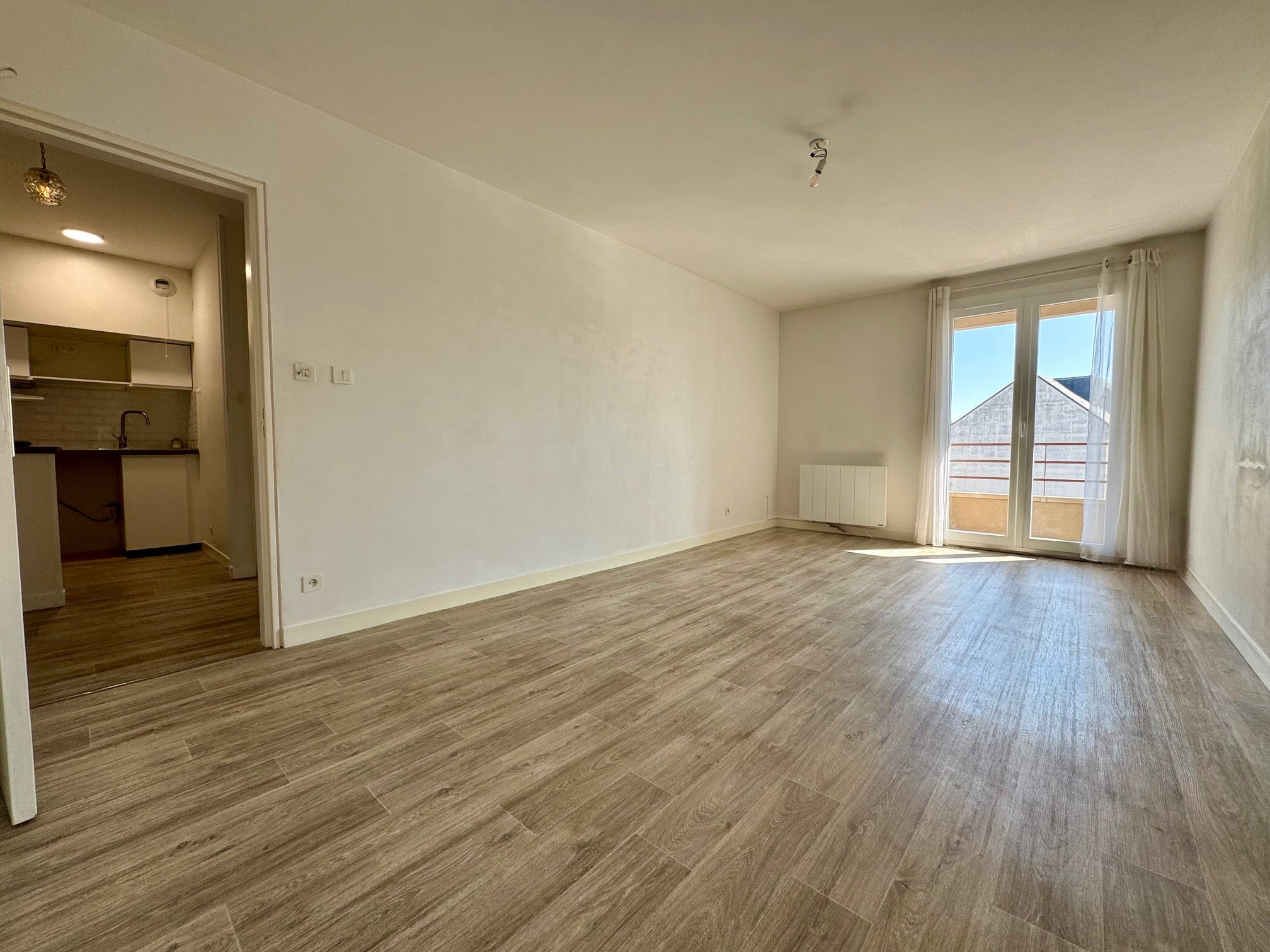T2 de 41m² composé d'un séjour de 19m² donnant sur balcon, une cuisine, une chambre de11m² et une salle d'eau avec WC.