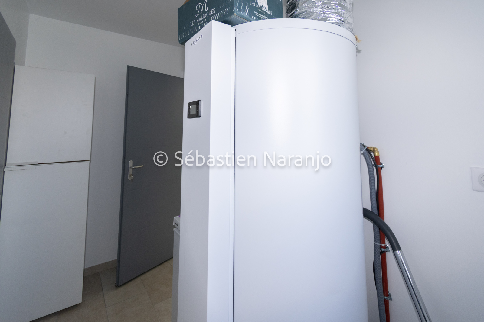 La maison dispose de prestations modernes avec panneaux photovoltaïques pour l’autoconsommation, pompe à chaleur air/air, chauffe-eau thermodynamique, volets roulants électriques et accès à la fibre. Elle bénéficie d’un excellent classement énergétique DPE A et respecte la norme RT 2020.