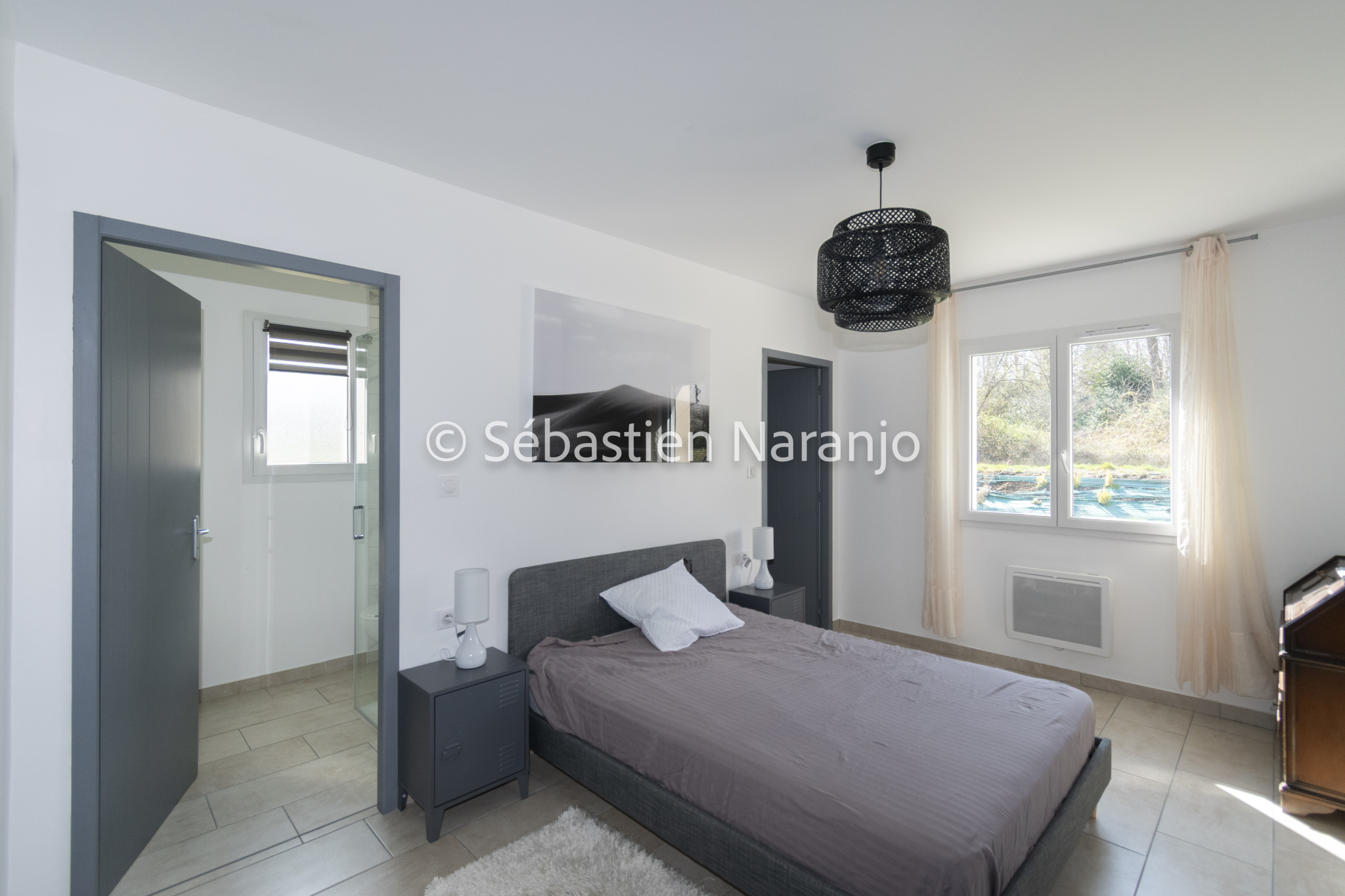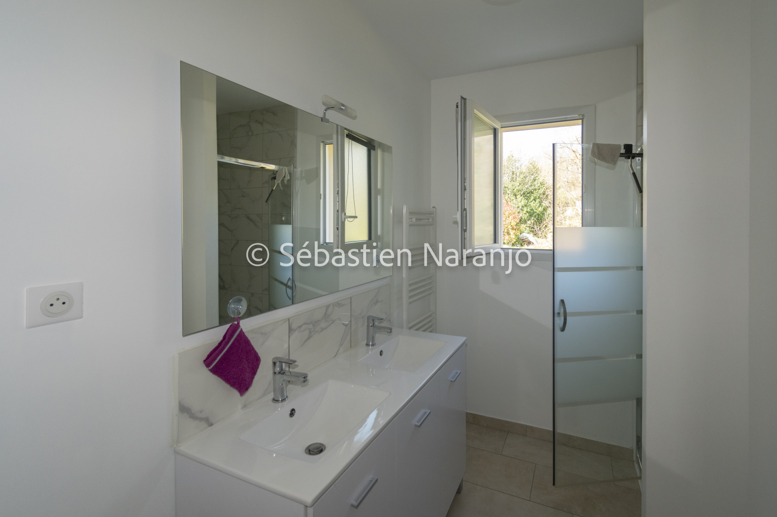 Elle se compose de trois chambres, dont une suite parentale avec salle d’eau, WC et dressing, d’une seconde salle d’eau avec douche à l’italienne, d’un WC indépendant ainsi que d’une pièce de vie lumineuse avec cuisine ouverte et entièrement équipée, un garage et un cellier.